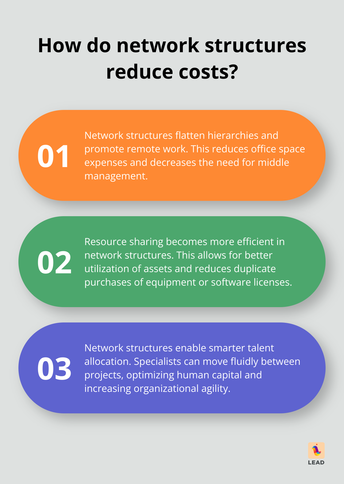Network structures offer a strategic approach to reducing overhead costs by streamlining operations and embracing flexibility. By flattening hierarchies and integrating remote work, these systems significantly decrease the need for expensive office spaces—a shift accelerated by the widespread adoption of work-from-home models. This transformation has prompted organizations to reevaluate traditional structures, often reducing reliance on middle management. For instance, Zappos adopted a holacracy—a form of network structure—and reported enhanced productivity with a leaner managerial framework, demonstrating how such systems can optimize costs while maintaining efficiency.