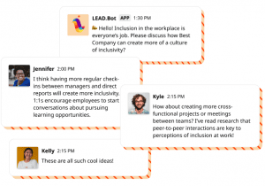 Rememberβchange doesnβt have to be grand to make an impact. Instead, change with the culmination of positive attitudes and hard workβthat makes up for an inclusive workspace. Maximize company culture and employee engagement platforms like LEAD.bot to promote and empower diversity, equity, and inclusion through matching channels. It is how you LEAD by exampleβby starting from within.Β