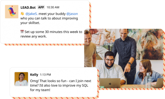 - Collaboration and Relationship Building: LEAD.bot’s matching algorithms and ONA tools help break down silos by connecting employees across teams and departments. These features promote cross-functional collaboration, mentorship, and knowledge sharing, ensuring that employees from both organizations work together effectively toward shared goals.