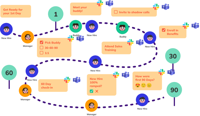 Welcome new employees by facilitating introductions to the relevant individuals via Slack and Microsoft Teams.