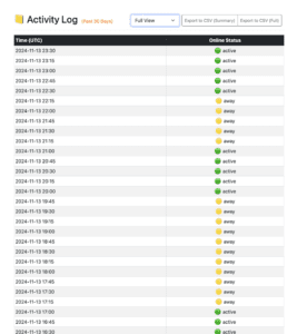 Below is an example of the summary views available for CSV export, along with the raw data: