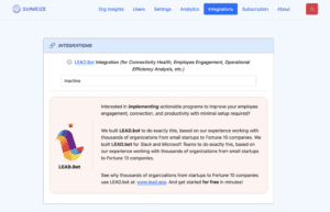 We recommend pairing Sunrize with LEAD.bot to implement actionable programs that foster collaboration, strengthen engagement, and enhance team connectivity health.
