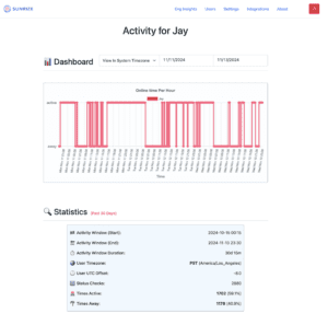 “The one-month POC was great. It was for a management discussion about working from the office vs. remote. I had a theory that developers (maybe other teams too, just less my forté) actually work more when remote. So, I used Sunrize to successfully show this”
